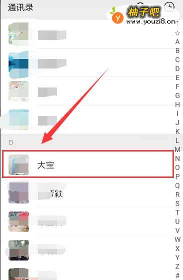 4在通讯录中找到你要设置为星标的好友,如图所示