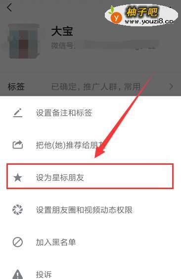 6这时,向上弹出选项,选择设为星标好友,就设置为星标好友了,如图所示