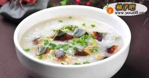 4粥煮的比较稠后放入肉丝、皮蛋,盐适量、鸡精,再煮一会,用勺子不断搅动,放入香油,搅匀就可以了。