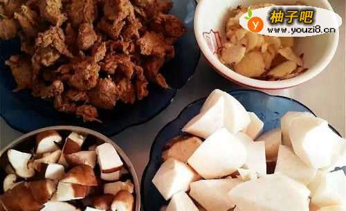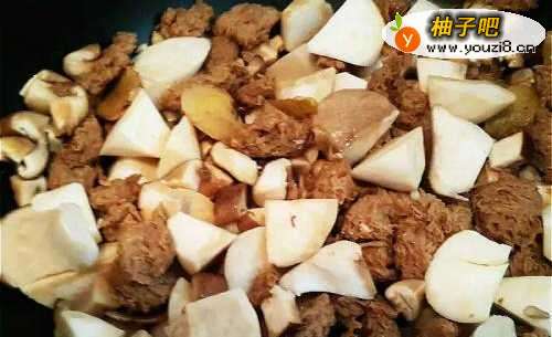 5所有炒好的食材倒入电子锅中,加入适量的水,加入适量的调味料。