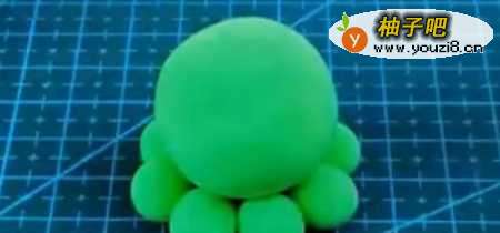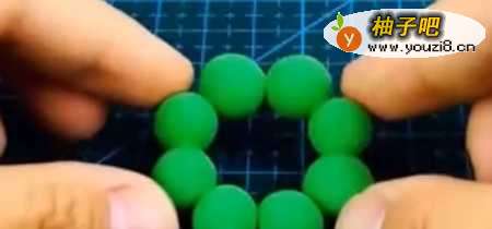 先和八颗圆圆的绿色粘土球并把它们连成一个小圆。