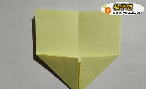 4翻面,将上面的长方形向下折,折成如图的形状。