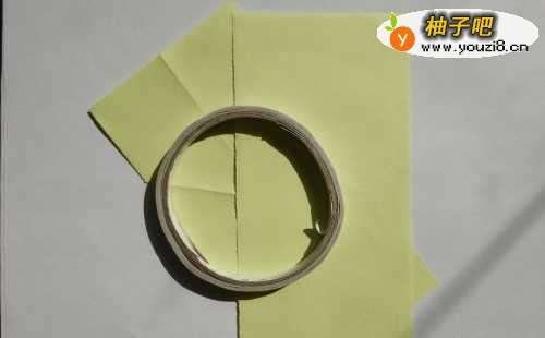 2将长方形彩纸两边对折,再对折,之后展开来。