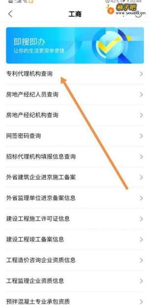 5点击打开工商后,如图所示找到专利代理机构查询。