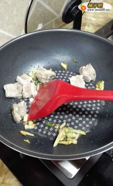 8加入排骨爆炒,炒出少许焦黄颜色。