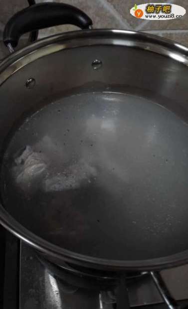 6将排骨放入烧开的开水中,焯掉油污,将排骨捞出。