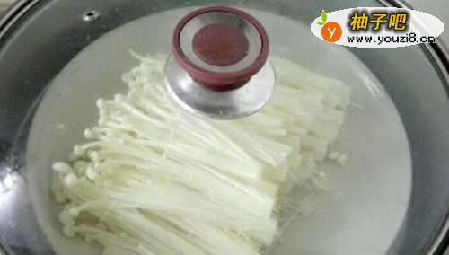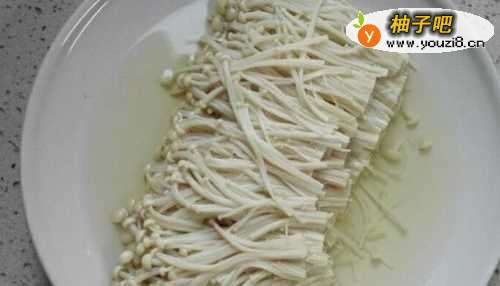 4蒸出的水不要倒掉,留着备用,金针菇捞出装盘。