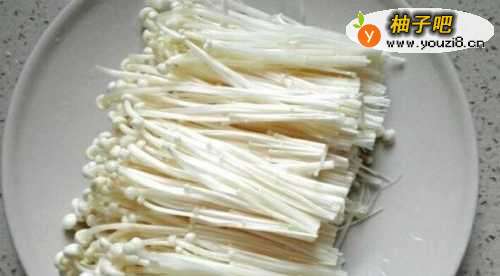 金针菇去除根部(1.5厘米即可),洗净,撕成一小簇。