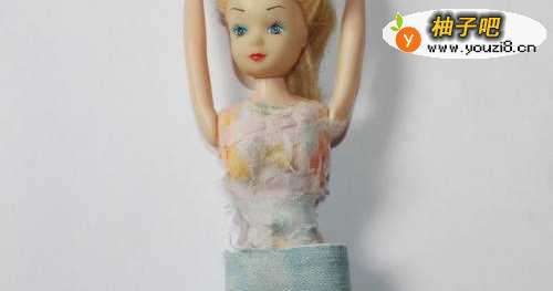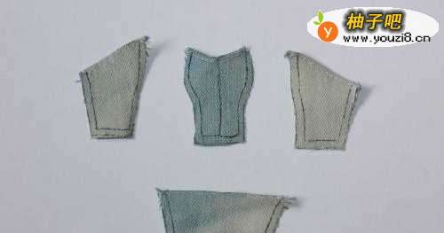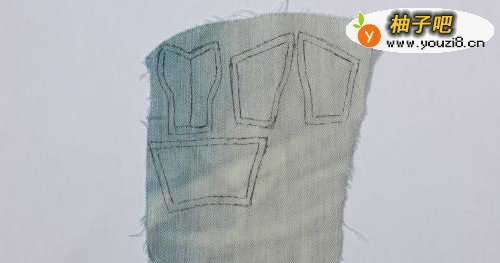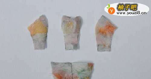 2将布料剪成小片,棍冲躲粘在娃劫汽娃身上。