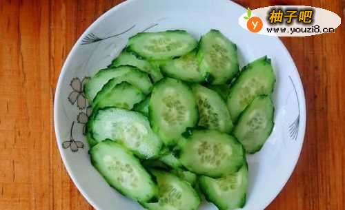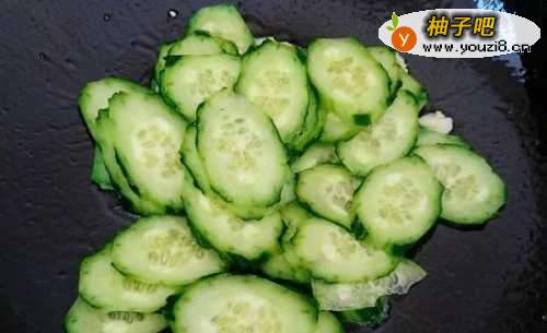 2黄瓜洗净去头尾,斜刀切片。至于要不要削皮,可以根据个人的喜好。