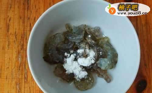 1:虾仁里放入白胡椒粉,料酒和淀粉腌制去腥。