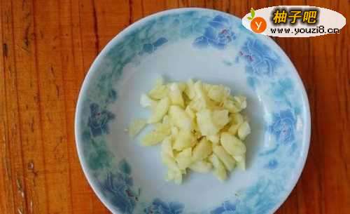 3蒜头剥皮,用刀拍扁,剁成蒜末备用。