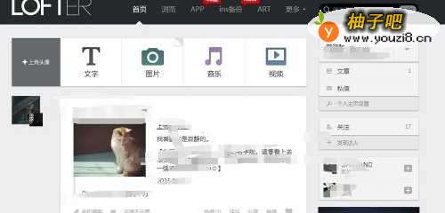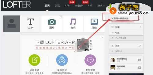 2在网易lofter的首页,我们可以很简洁的看到类似于微博样的个人页面。