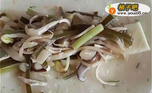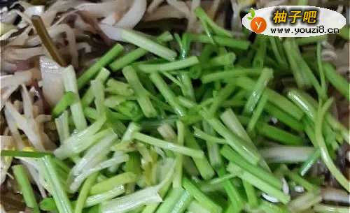 4最后加入芹菜为炒一下追块,熄火拌入乌醋与香油完成备料