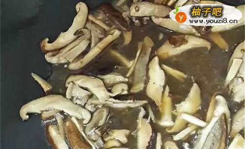 2香菇爆香后加酱油、白胡椒及少许水微炒一下