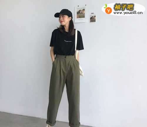 搭配五:黑色T恤+卡其色休闲裤如果喜欢休闲风格,不妨选择这类搭配,黑色T恤简约、大方,搭配一条卡其色休闲裤,时尚、简约又很有休闲范儿。