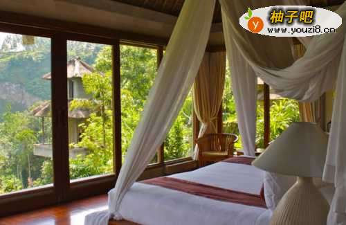 落地窗最好采用双层的窗帘,一层比较薄,可用纱质的,一层是垂感比较强的厚布;在睡觉时,拉上厚的,在平时,拉上一层纱质的,既遮挡隐私,又具有浪漫感、朦胧感。