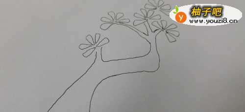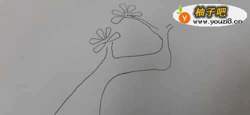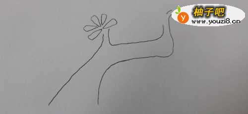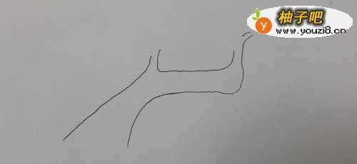 先在纸上面画出松树的枝干部分,松树的枝干有一点的弯曲。