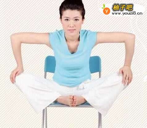 4方法四:端坐,手臂伸直举至头上,掌心向上,两手的手指相对,保持上举姿势数秒,要求身体挺直,使肩、背部充分伸展;或双手叉腰,双腿屈膝,抬起双腿,离地面越高越好,但上体不要后仰,维持此姿势数秒钟。此操可消除因久坐引起的腰背及腿部的疲劳。