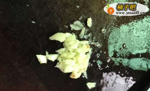 2蒜米拍碎,猪肉剁成肉沫,放盐,油,腌10分钟。