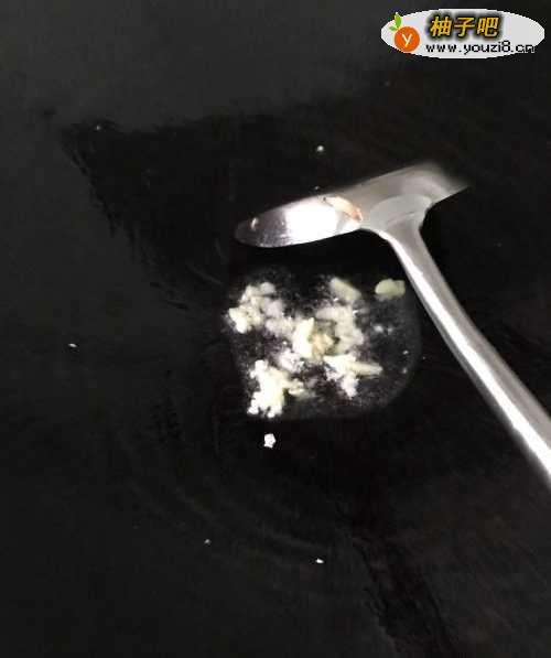 4再倒些油,把蒜米放入,倒入肉沫,翻炒均匀。