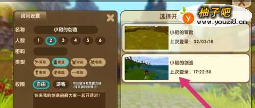 5选择要共享的房间,选择人数,然后再点击【开始游戏】。创建房间成功。