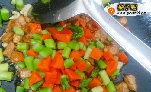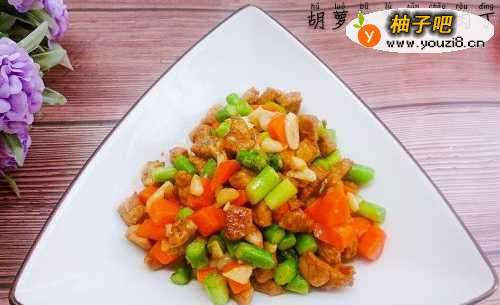 胡萝卜芦笋炒肉丁,营养丰富,做法简单,颜色漂亮,喜欢的话就来做做看吧!