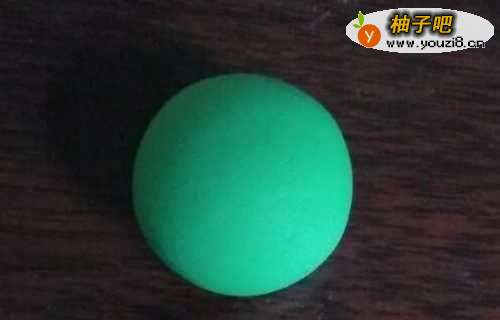 首先,取来一块大小适宜的绿色超轻粘土,然后用手将其搓圆至绿色粘土表面变得光滑,这样,青蛙可爱的头部就出来了,如图即可。