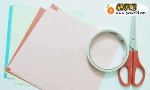 首先,需要准备工具:5张大小相同的正方形彩纸,大小随意,颜色随意,我用的是7.5*7.5cm,仅供参考;双面胶;剪刀