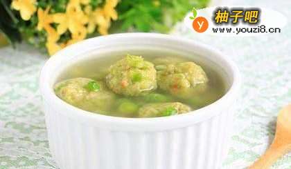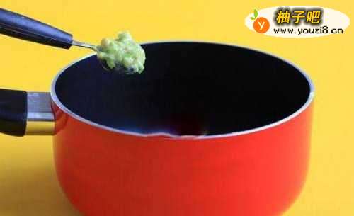 5用挖冰淇淋的圆勺,把虾泥舀进汤里。圆勺可事先抹层油,这样不会粘。