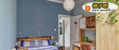 10儿童房间以蓝白双色为主调,配以宜家网红吊顶灯及其星星灯,整体室内空间非常梦幻。屋内整体选用成品家具,等小孩子长大了,更换起来更方便。