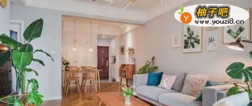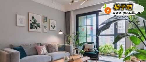 这是套90平北欧风格案例,客厅以灰色与木色为基调,极大地落地玻璃窗明朗而透亮,整体室内空间温馨舒服。
