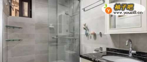 11浴室柜选用黑色大理石台面,增加高级质感;镜柜设计构思,则扩大了洗手间的收纳整理室内空间。洗手间用玻璃隔断开展干湿分离,有效避免了洗澡时水溅到别的区域。