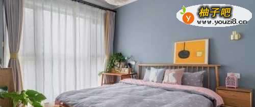 9主卧室则以浅灰蓝为主调,配搭原木色地板,让室内空间沉浸于宁静而舒缓的气氛中。