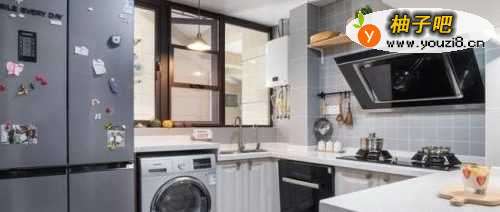 8厨房以灰白双色为主调,总体纯净而明亮。功能齐全的U型布局,最大程度地提升了厨房的使用率。