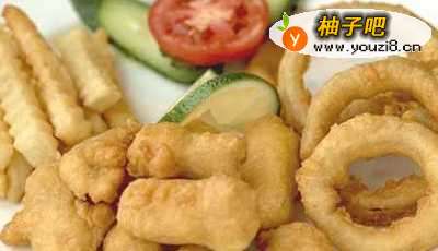 在英国,最典型的路边小吃就是“炸鱼和薯条(Fish&Chips)”了。路边经常有很多小店都卖“炸鱼和薯条”。这里的薯条称其为薯条,不如称其为“薯棍”,因为它不像我们原来吃的薯条那么细,而是每一根都特别的粗。在英国的路上行走,无论什么时间,都经常可以看到人们手捧一个纸包,里面是浇了番茄酱或者芝士调料的薯条和一大块煎鱼。其实最有意思的就是这种鱼和薯条的包装了,尤其是在路上吃的时候,它们不是装在盘子里,而是用报纸包起来。听说在英国,最早选用包薯条的报纸一定是当天的泰晤士报,这样就可以一边吃着炸鱼一边看报纸了。当然,现在的薯条早已经改用干净的白纸或者纸盒装。由于“炸鱼和薯条”新鲜美味,热气腾腾,又方便快捷,几百年来,“炸鱼和薯条”就在英国成为雅俗共赏,老少皆宜的一道美食了。不过,有的英国人把他们当作一顿饭,而有些人就只是把薯条当作餐前小点和零食。