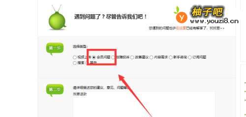 2进入意见反馈之后选择我们需要的反馈类型,我们选择会员类型。