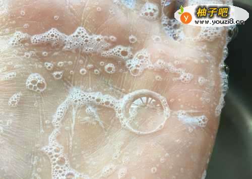 3十点钟后用手把洗面奶搓出沫子,洗干净脸部。
