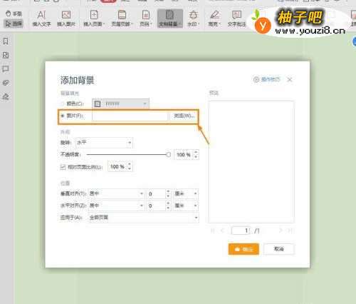 3在添加背景页面,勾选【图片】,点击【浏览】。