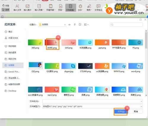 4在文件对话框界面,选择【图片】,点击【打开】即可。