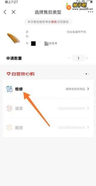 5第五步,然后我们选择售后类型,有维修,退货,换货,我们根据自己的需求进行操作,例如,我点击【维修按钮】,详细如下图