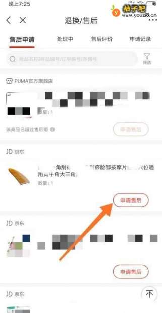 4第四步,进入退换/售后界面以后,我们选择找到你要申请售后的商品,然后点击按钮【申请售后】,详细如下图