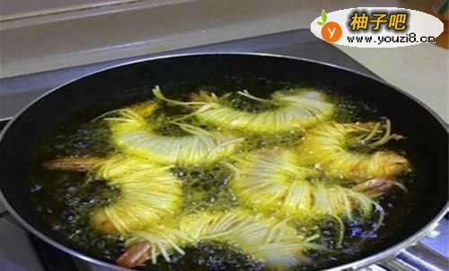 4油温变热关小火炸虾