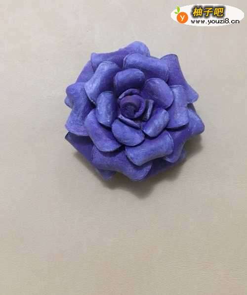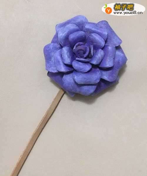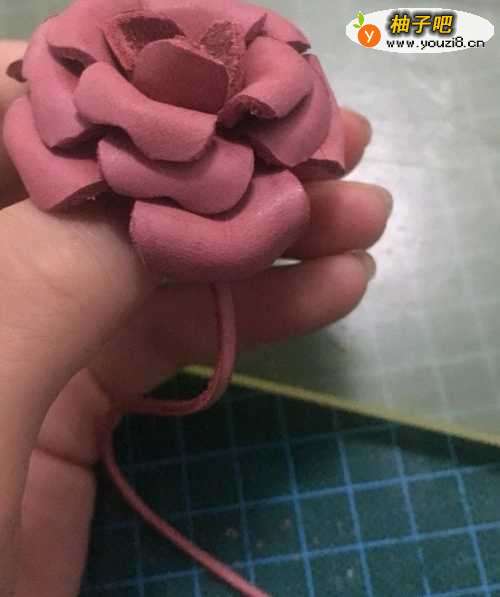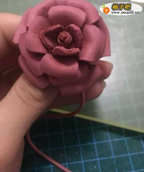 5从上面这个角度来看一下已经有雏形的皮革花,可能皮子太厚,形状也不好固定,所以建议大家还是用稍微薄一些的皮子好做。