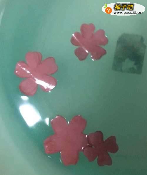 3泡好后,把这些花拿出来擦一下,干了以后,在每个花朵的中间打眼儿,这样是为了中间穿线(花瓣大一点的做出来比较好看)。