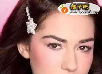 圆圆的脸蛋虽然可爱,可是也显胖啊!所以圆脸的宝宝们画腮红时,使用腮红刷沿着颧骨向发际线两侧轻刷,这种画法可以起到拉长脸型的效果。