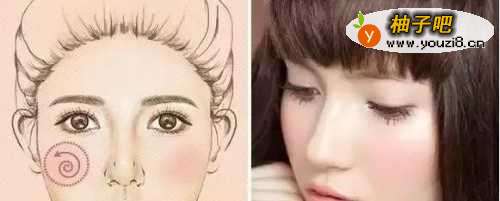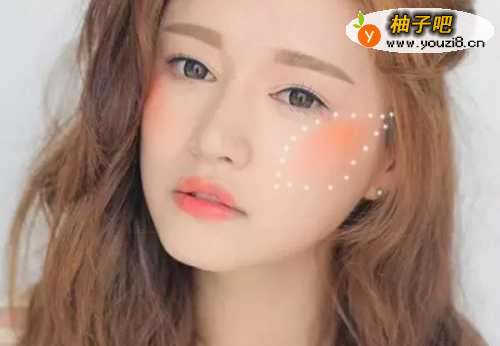 这种脸型是非常减龄好看的一种脸型,画法同样也非常简单。在笑肌的位置,选择横向涂抹椭圆形的方式自然晕染即可,这样可以显得更加年轻和少女感。