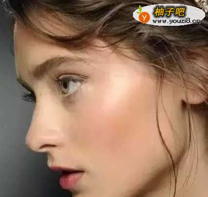 鹅蛋脸算是最完美的脸型,腮红画起来也比较简单,从苹果肌开始以打圆的方式横向往太阳穴刷,增加红润感即可。