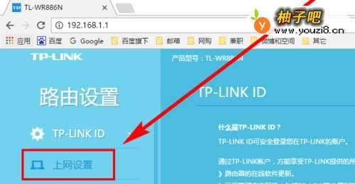 5向上滚动页面,在左侧的导航栏中找到并点击【上网设置】,步骤截图如下所示: