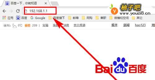 2在浏览器的地址栏中输入【192.168.1.1】后按Enter键,步骤截图如下所示: